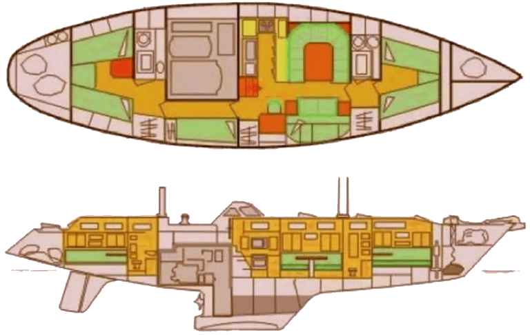 Denna modell från 1993, noggrant underhållen och regelbundet uppdaterad, är i utmärkt skick. Den har dragit nytta av många tekniska förbättringar och rigoröst underhåll. Den är redo att sätta segel omedelbart och erbjuder all komfort som krävs för havsöverfarter eller för längre livslängd ombord.
